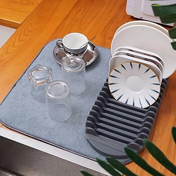 3-It is a microfiber lined with quick-drying, super absorbent and dries out your dishes, bars and other kitchen utensils in seconds, and the mat itself is a very little dryer and is wet thanks to other pads